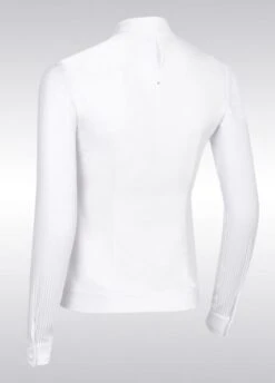 This classic-cut riding jacket is refined by an alcantara collar and contrasting piping. The technical 4-way stretch material combines elegance and performance. It follows through you movements and provides breathability, water repellency and antibacterial properties. The jacket has two front pockets and buttons fastening on the front, with a subtle embossed logo on the shoulder.