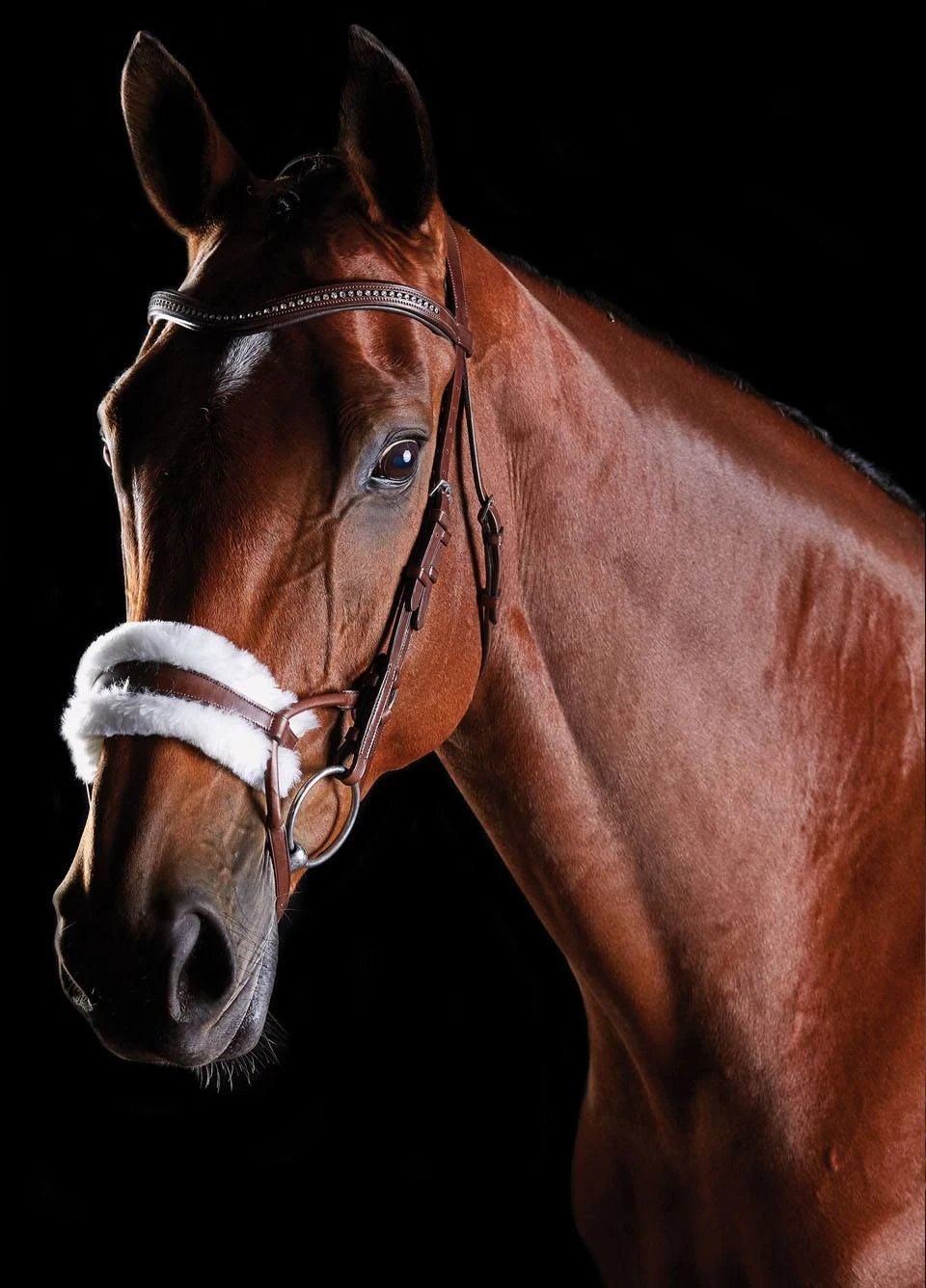 It has an anatomically shaped head piece which provides added comfort by distributing even pressure across the poll. With shaped padding around the horse’s ear it allows for maximum freedom and comfort, while the ergonomically designed noseband alleviates pressure on the upper jaw and molar teeth.