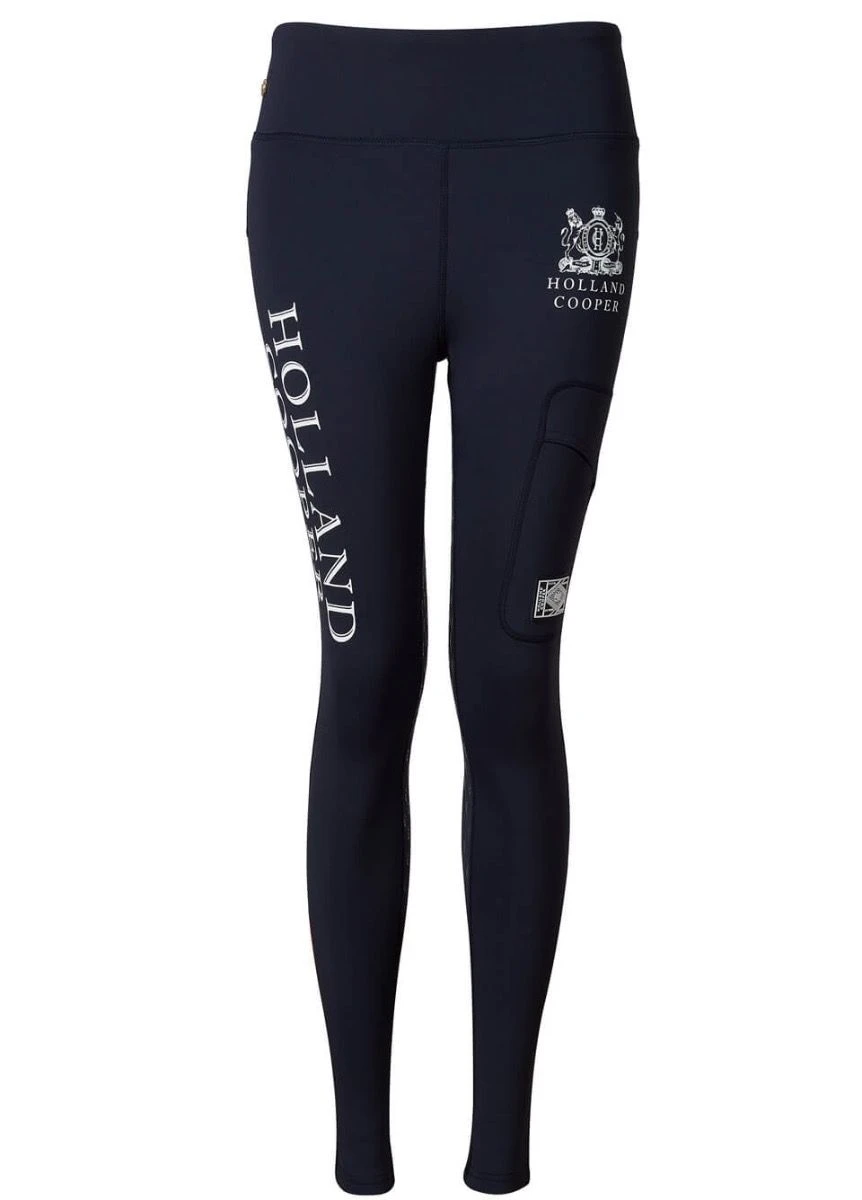 This riding legging is designed to ensure maximum movement and comfort while in and out of the saddle. The HC technical stretch high-waisted, squat-proof, ultra-feminine legging is designed with a super-slim fit that lifts and contours to your figure. Complete with monogramed silicone riding knee grips, signature gold rivet and quick-dry technology. HC sophisticated fabric also ensures that the leggings are not see-through.