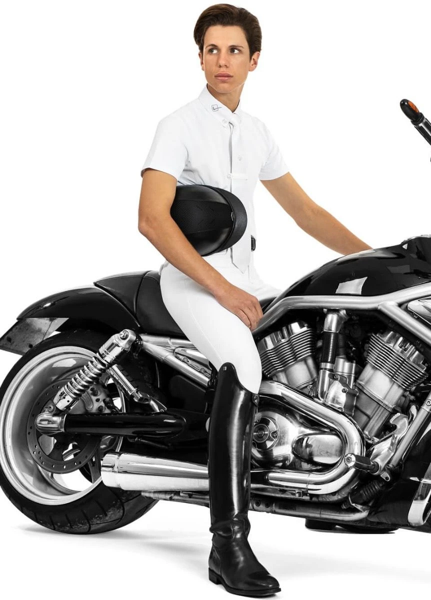 Made from a luxurious, technical base material that moves as you move, it effectively regulates heat and moisture through strategically placed laser cut vents under the arm and around the collar for maximum air flow