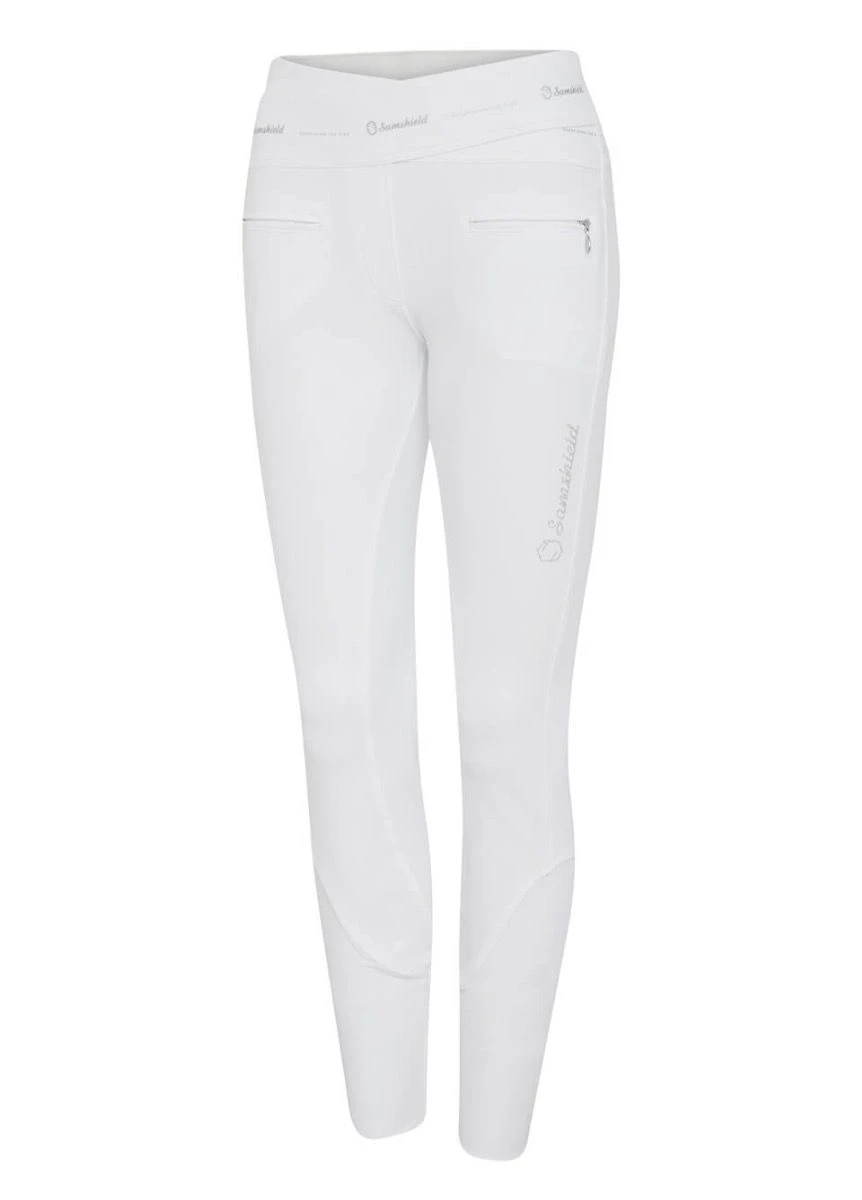 The Alpha breeches have a twisted style elasticated belt at the front for a very comfortable and incredibly flattering fit. The fabric is high stretch, water repellant, breathable and has a six layer grip to give superior stability in the saddle. The Samshield logo is embellished on the leg in Swarovski crystals for an elegant finish.
