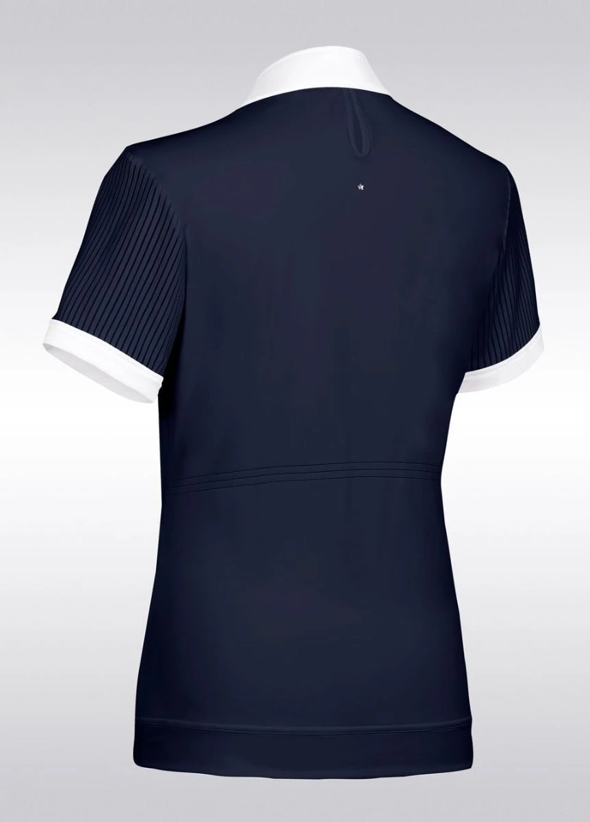 The Apolline shirt is designed with a soft high stretch fabric which provides high breathability and comfort to wear. The tailored fit allows excellent positioning when active. Thanks to the special construction of the fabric the Apolline shirt offers protection against ultraviolet rays. The collar closes with hidden small snaps and zipper. The Apolline shirt is embellished with a Swarovski® Samshield blazon on the collar and transparence fabric on the sleeves and chest providing feminity, elegance and refinement.