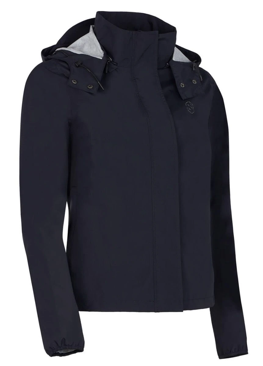 The short rain coat for women Ilona is fitted with a waterproof and windproof membrane, providing elegant protection against the weather. Ultra-light and breathable, it adjusts perfectly for great comfort. The elasticated sleeves, adjustable hood and drawstrings at the waist allow you to protect yourself against the wind and rain. The rain coat is decorated with a Swarovski® crystal blazon on the chest.